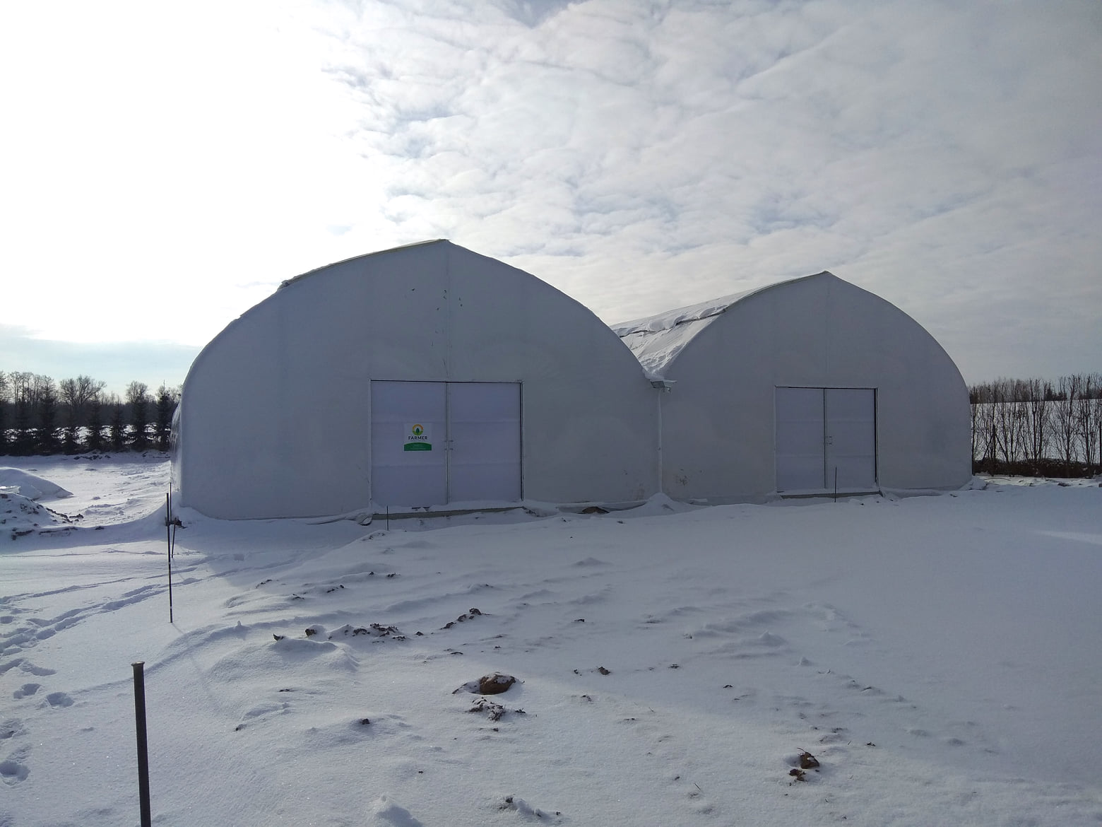 . Konstrukcje pokryła folia podwójna, pompowana - Special Pepiniere 200mic. Dodatkowo drzwi dwuskrzydłowe, zostały pokryte poliwęglanem mlecznym - 8mm. Za wymianę powietrza odpowiada system wietrzenia górnego