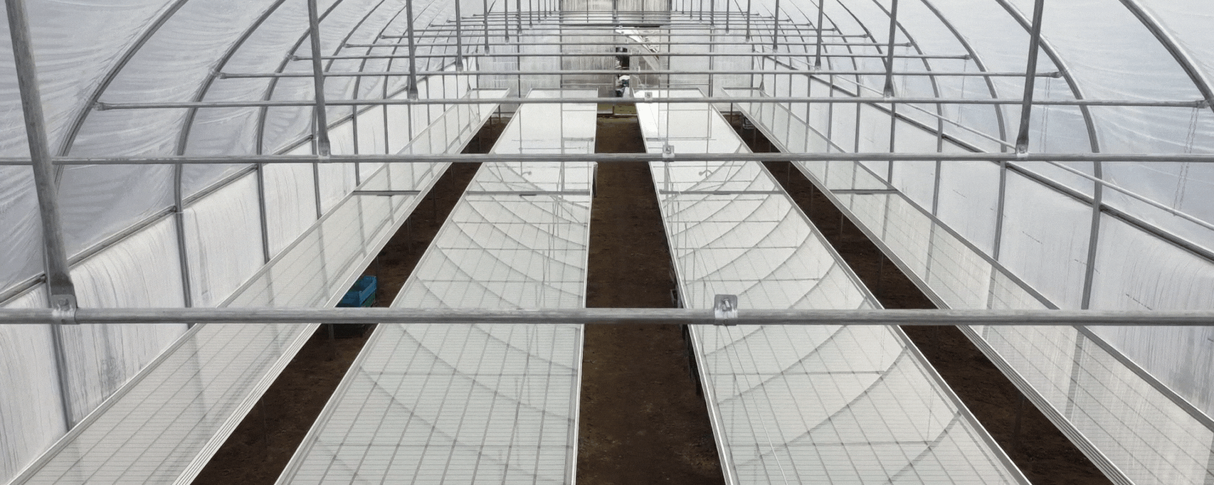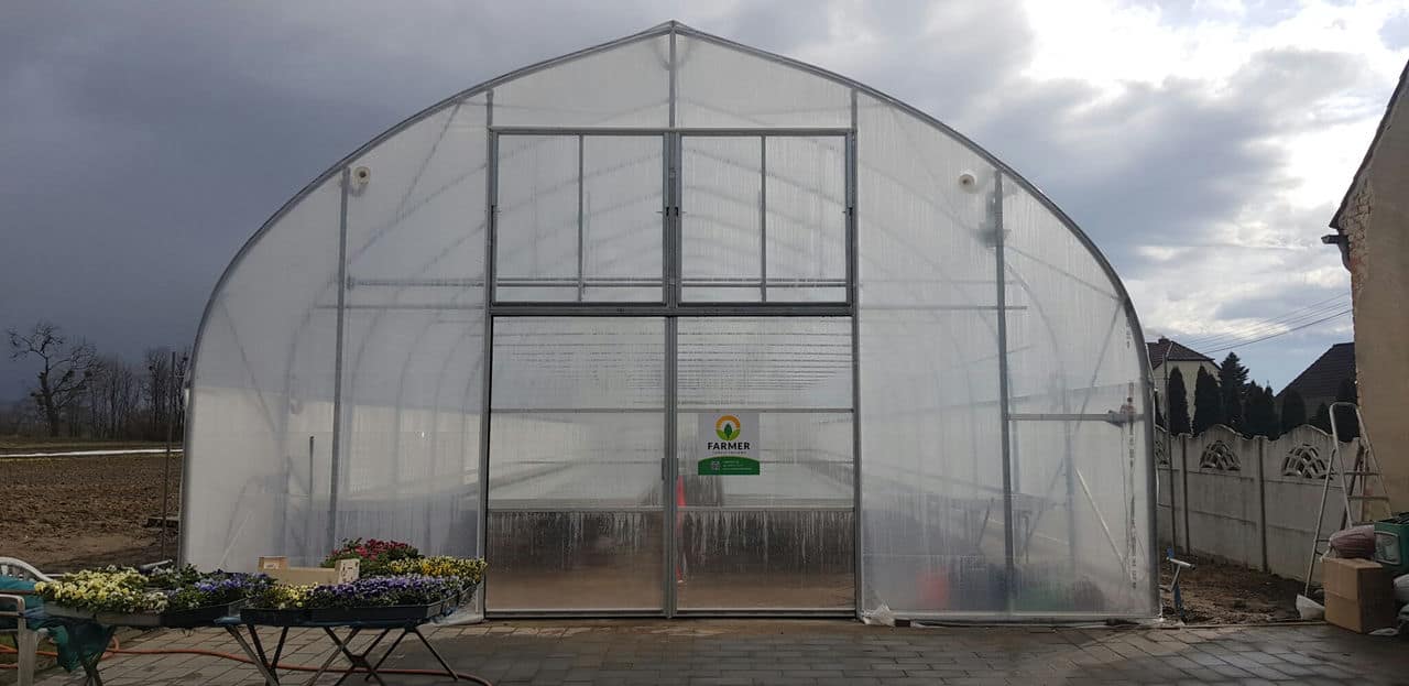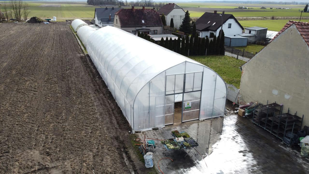 Pojedyncza nawa, wyposażona w system wietrzenia bocznego rolowanego za pomocą przekładni elektrycznej oraz system wietrzenia szczytowego. Konstrukcja została pokryta folią podwójną, pompowaną Deltatex 150mic.
