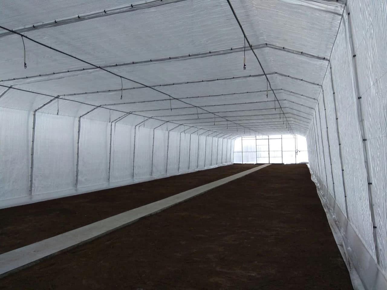 Prezentowany tunel o wymiarach 9m x 40m, został wyposażony w system wietrzenia górnego, system cieniujący w układzie trapezowym oraz system zraszający. Zastosowanie folii podwójnej pompowanej, gwarantuje ochronę przed niesprzyjającymi warunkami atmosferycznymi.